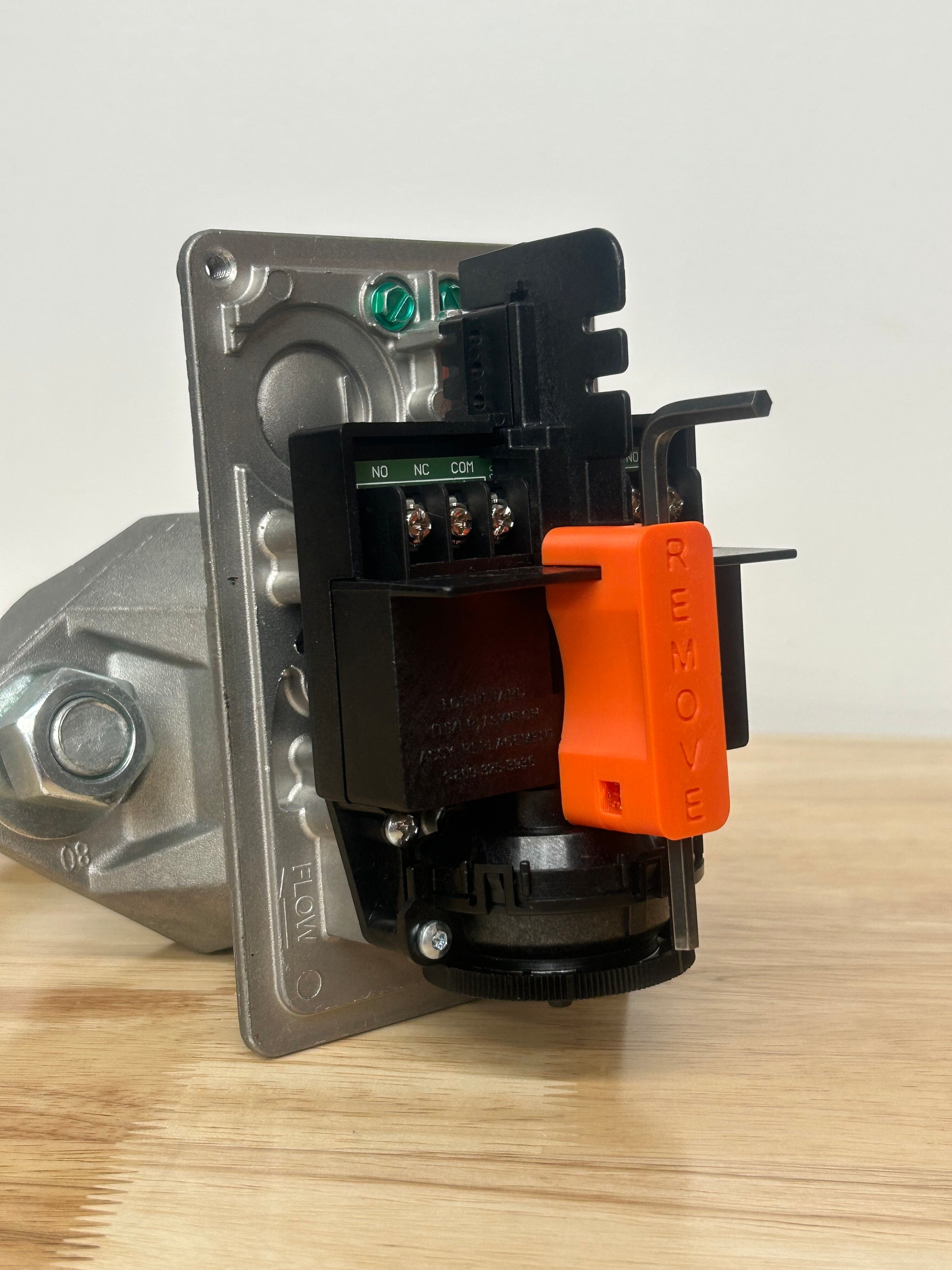 Flow switch cover cannot be reinstalled without removing the tool first, helping to ensure the system is never left disabled unintentionally.
